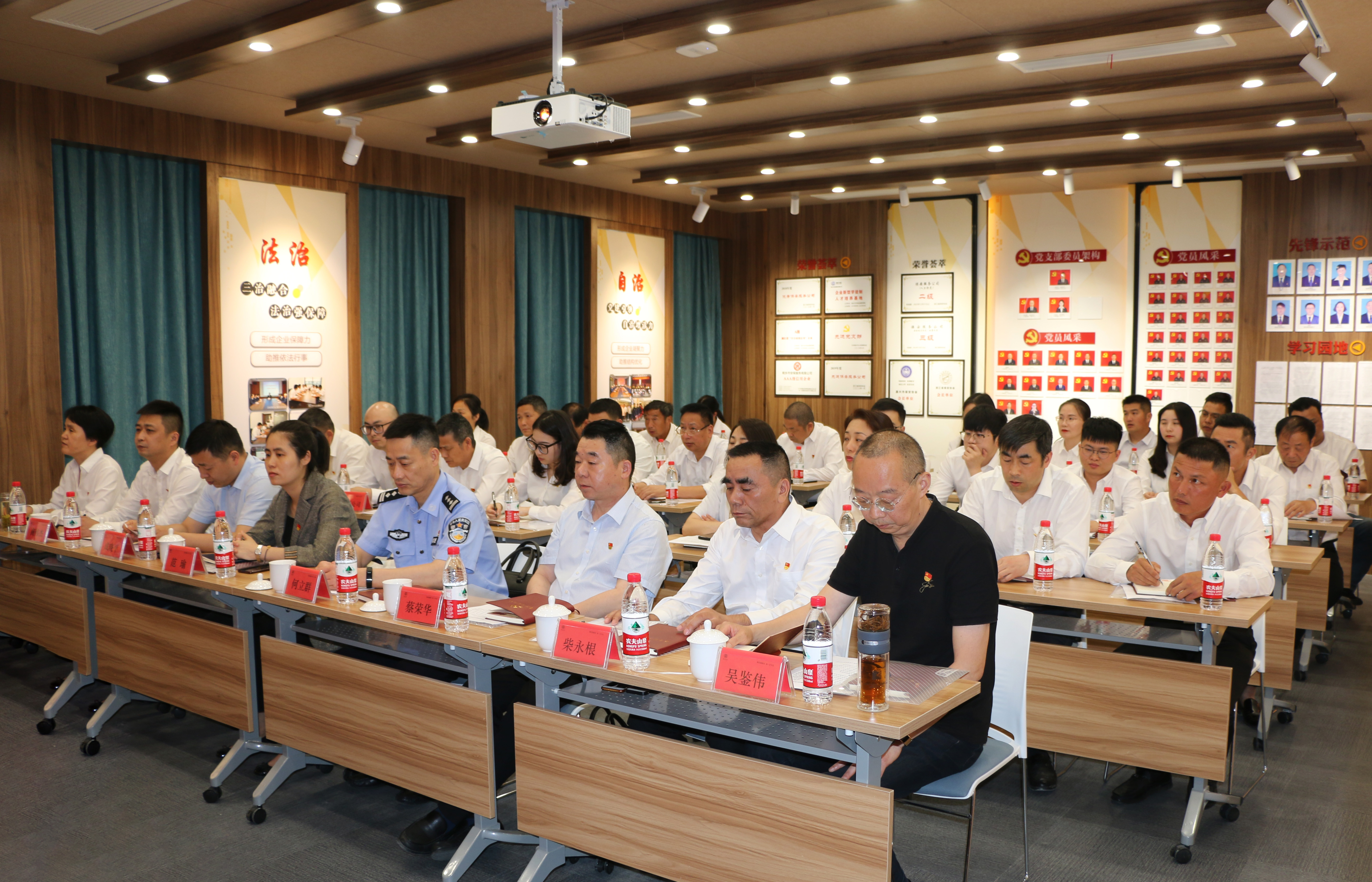 桐鄉(xiāng)市委組織部副部長范瑜、桐鄉(xiāng)市公安局黨委副書記政委何立群、桐鄉(xiāng)市崇福鎮(zhèn)黨委副書記成曉平、桐鄉(xiāng)市崇福鎮(zhèn)華光村黨總支書記蔡榮華、桐鄉(xiāng)市安保服務(wù)有限公司黨支部書記商偉杰、浙江崇德建設(shè)有限公司黨支部書記柴永根、黨建指導(dǎo)員沈霞、吳鑒偉等領(lǐng)導(dǎo)出席會議,兩個(gè)支部全體黨員等參加。
