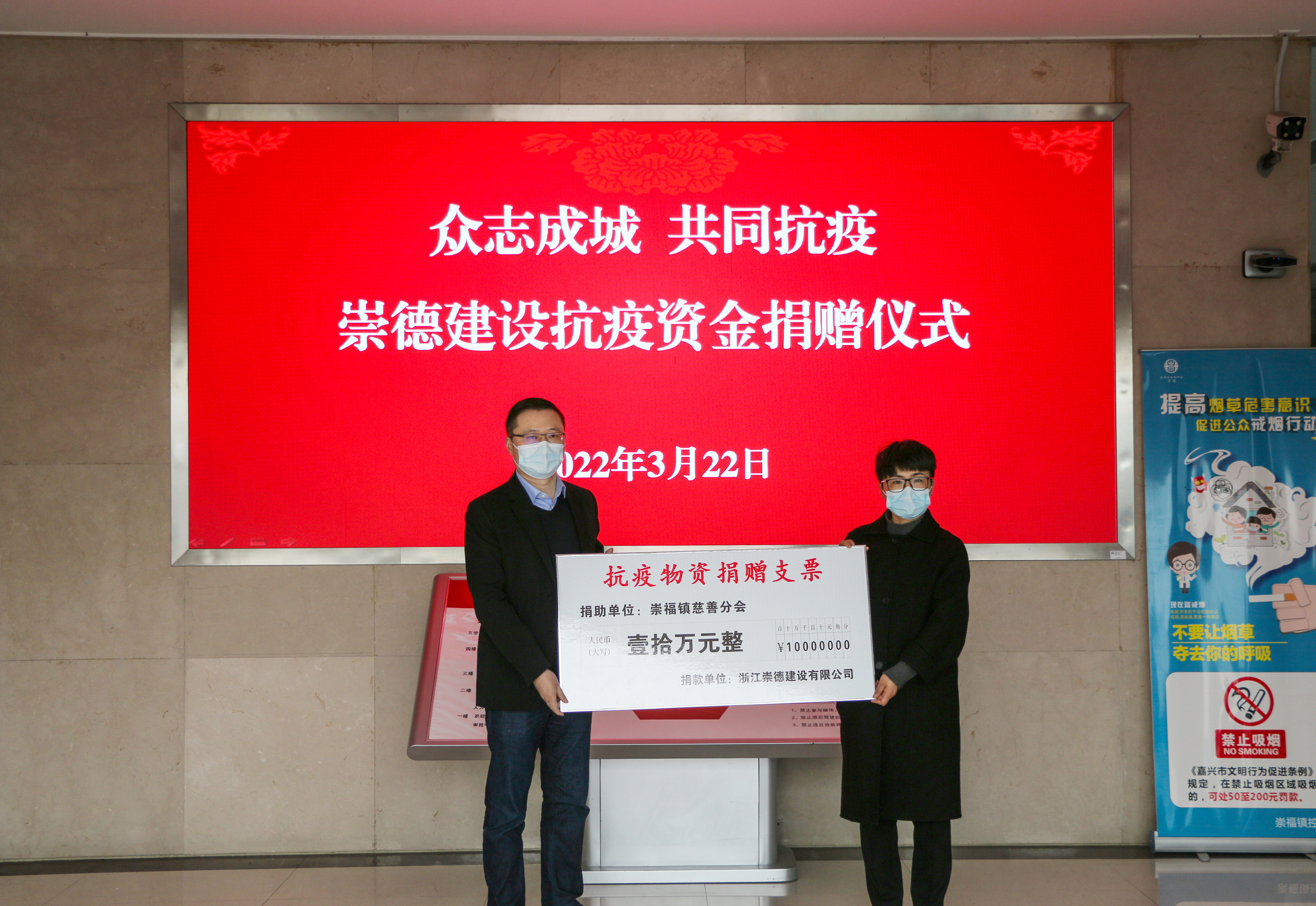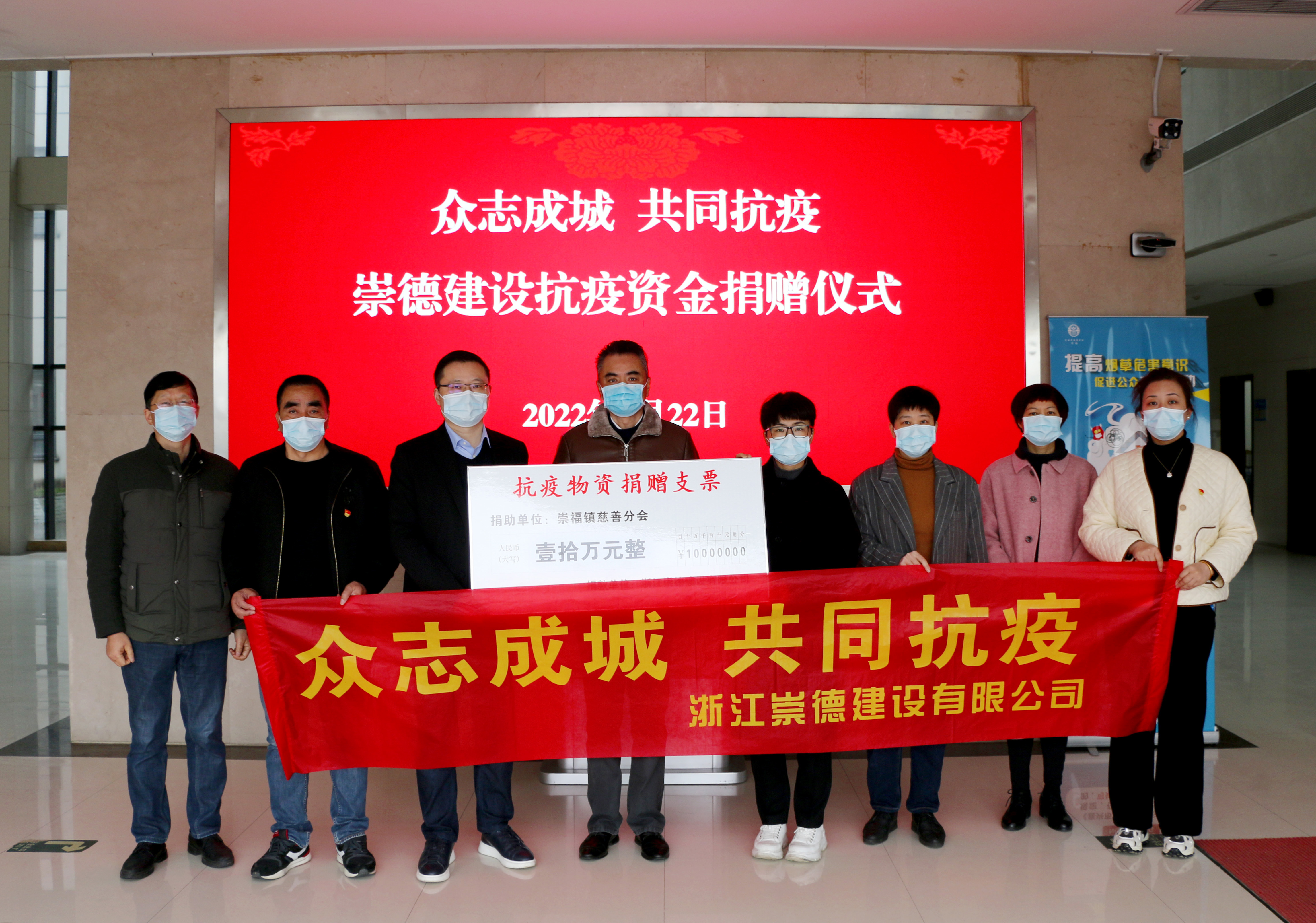捐贈(zèng)儀式上,浙江崇德建設(shè)有限公司通過(guò)“桐鄉(xiāng)市慈善總會(huì)崇德建設(shè)冠名慈善共富基金”向崇福鎮(zhèn)捐款10萬(wàn)元,定向用于崇福鎮(zhèn)抗疫專用資金,以實(shí)際行動(dòng)為打好疫情防控殲滅戰(zhàn)貢獻(xiàn)出一份力量!